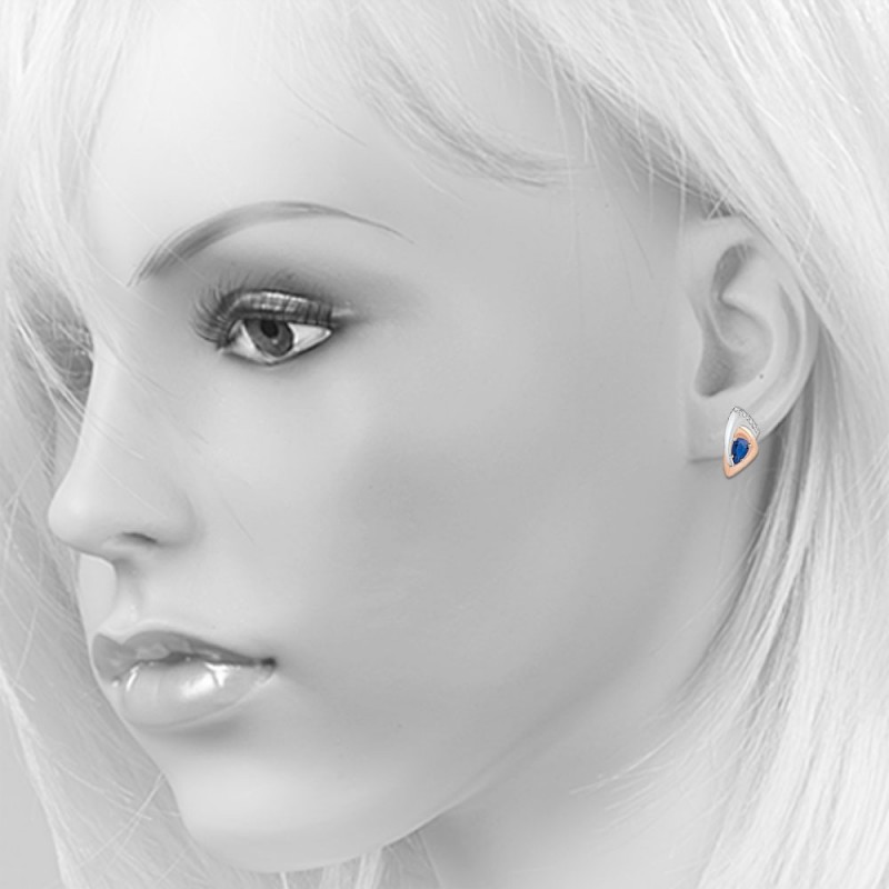 Elegante Goldohrringe aus 585er Rot/ Weißgold mit Diamanten und Saphir.