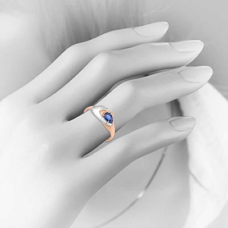 Eleganter Ring aus 585er Rot/Weißgold mit Diamanten und Saphir. Wunderschönes Geschenk für die Geliebte!