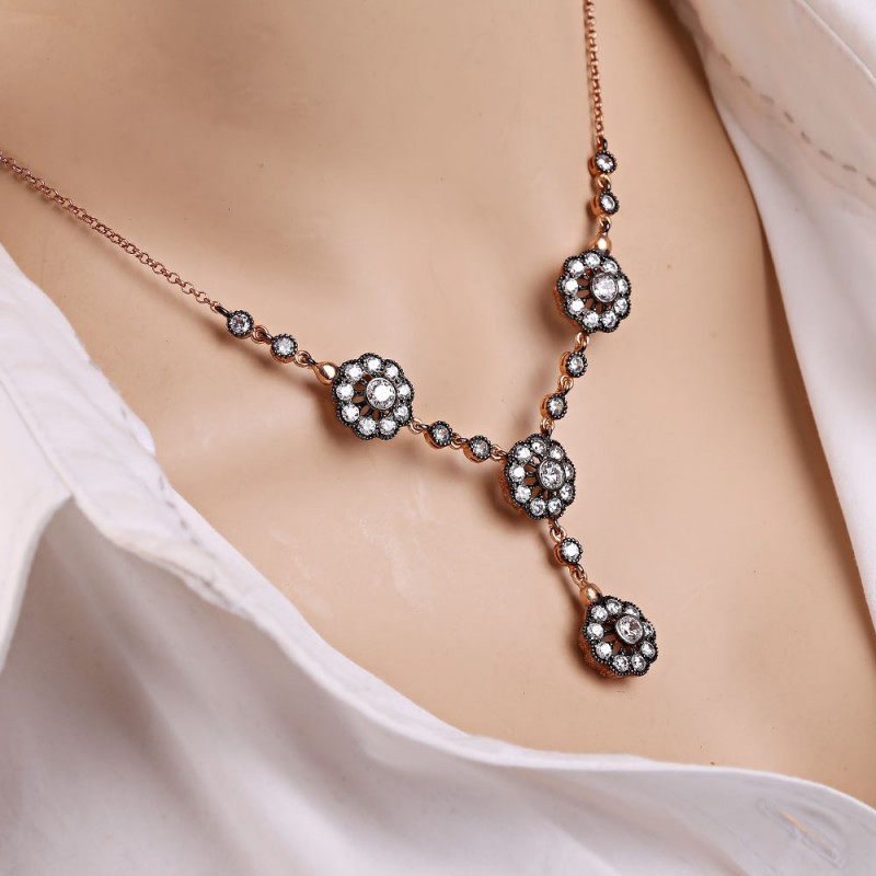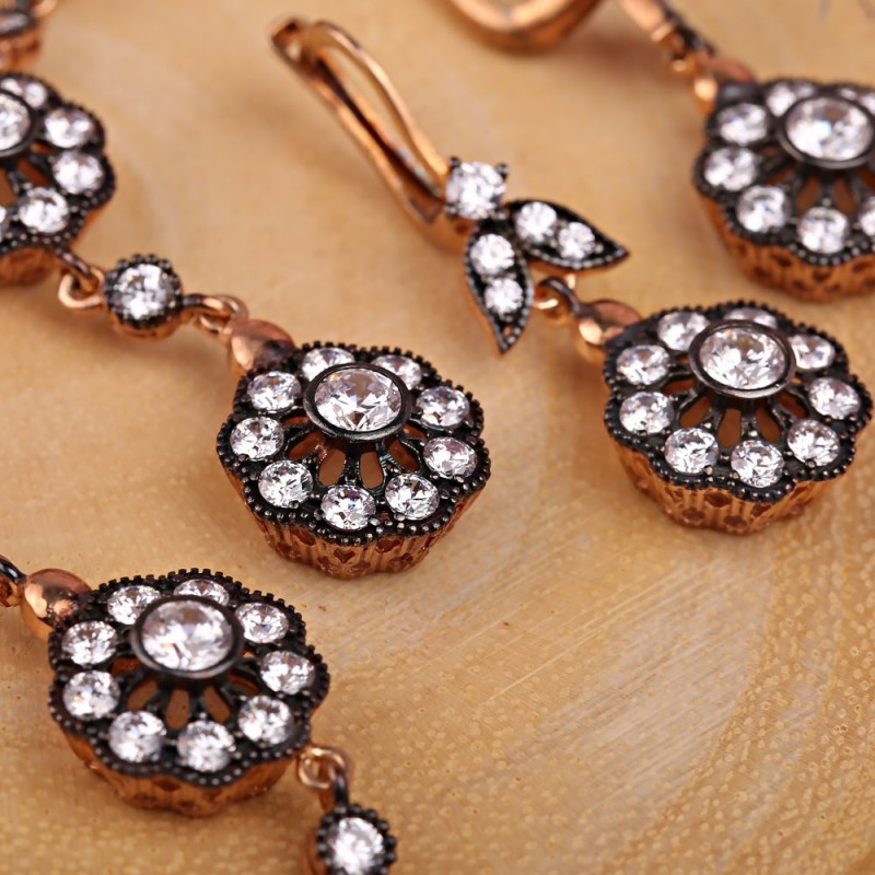 Ein entzückendes Ethno-Set aus rotvergoldetem geschwärzten 925er Sterlingsilber mit Einsätzen aus funkelnden Zirkonia! Die Kombination dieser bezaubernden Steine verleiht dem Produkt ein einzigartiges Aussehen und fesselt das Auge. Ein solches Set wird die Zärtlichkeit, Weiblichkeit und den Charme seiner Herrin unterstreichen!