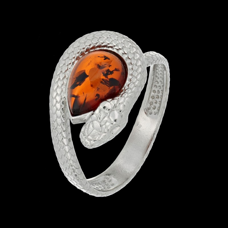 Eleganter Ring aus 925er Silber, rhodiniert, verziert mit Bernstein, mit diesem erstaunlichen "Stück der Sonne", in allen Schattierungen der Cognacfarbe, begeistert und erfreut Sie dank seiner Schönheit! Der Ring wird die Zärtlichkeit, den Charme und die Natürlichkeit Ihrer Schönheit perfekt betonen und die Aufmerksamkeit auf die Weiblichkeit Ihrer Hände lenken.