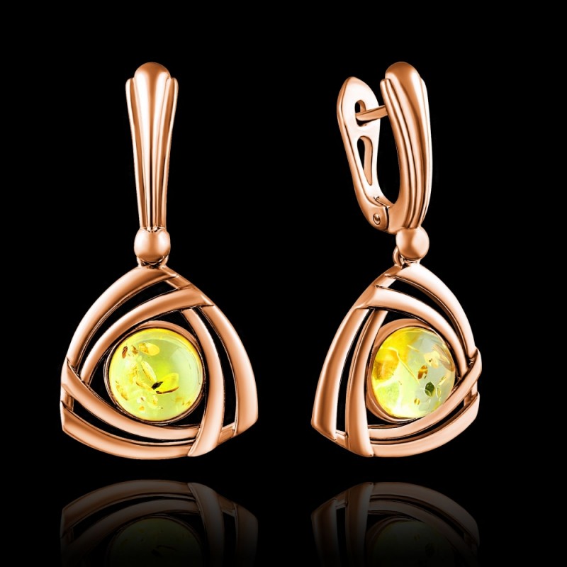 Wunderschöne Ohrhänger aus Silber 925 Probe (rotvergoldet), mit Bernstein, erstaunlichen "Stück der Sonne"! Eine einzigartige Gelegenheit, Ihre Individualität zu betonen, das Bild von Weiblichkeit, Sonnenschein und Zärtlichkeit zu vermitteln.