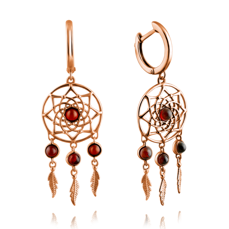 Wunderschöne Ohrhänger aus Silber 925 Probe (rotvergoldet), mit Bernstein, erstaunlichen "Stück der Sonne"! Eine einzigartige Gelegenheit, Ihre Individualität zu betonen, das Bild von Weiblichkeit, Sonnenschein und Zärtlichkeit zu vermitteln.