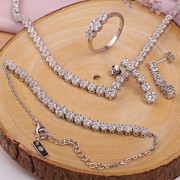 Ein entzückendes Set aus 925er Sterlingsilber mit Einsätzen aus funkelnden Zirkonia! Die Kombination dieser bezaubernden Steine verleiht dem Produkt ein einzigartiges Aussehen und fesselt das Auge. Ein solches Set wird die Zärtlichkeit, Weiblichkeit und den Charme seiner Herrin unterstreichen!