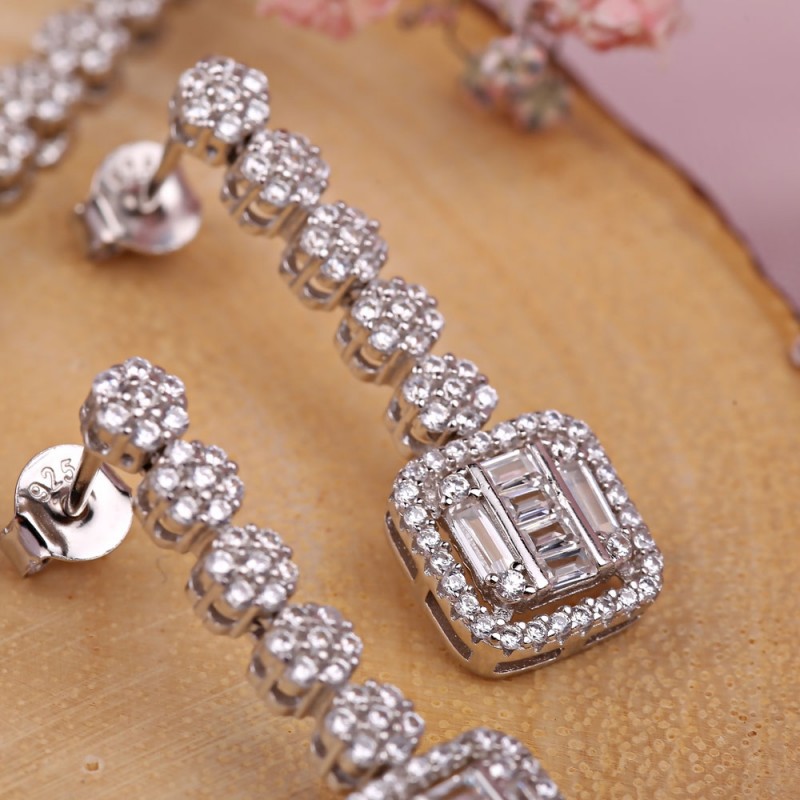 Ein entzückendes Set aus 925er Sterlingsilber mit Einsätzen aus funkelnden Zirkonia! Die Kombination dieser bezaubernden Steine verleiht dem Produkt ein einzigartiges Aussehen und fesselt das Auge. Ein solches Set wird die Zärtlichkeit, Weiblichkeit und den Charme seiner Herrin unterstreichen!