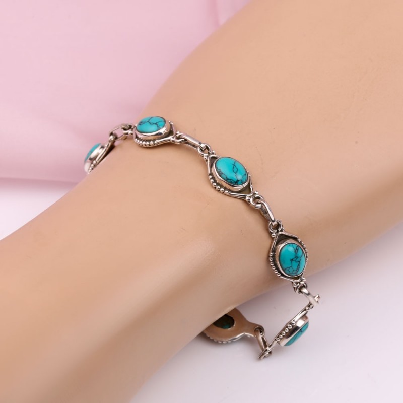 Schöner weiblicher Armband aus geschwärztem 925er Sterlingsilber mit Türkis-Einsätzen. Dieses Armband betont Ihre Schönheit, Weiblichkeit und Eleganz.