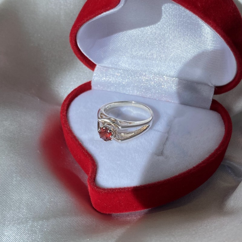 Bezaubernder Ring aus 925er Silber mit Einsatz aus rotem Zirkonia. Solche Ringe unterstreichen perfekt die Raffinesse, Weiblichkeit und den Charme ihrer Besitzerin.