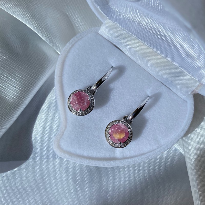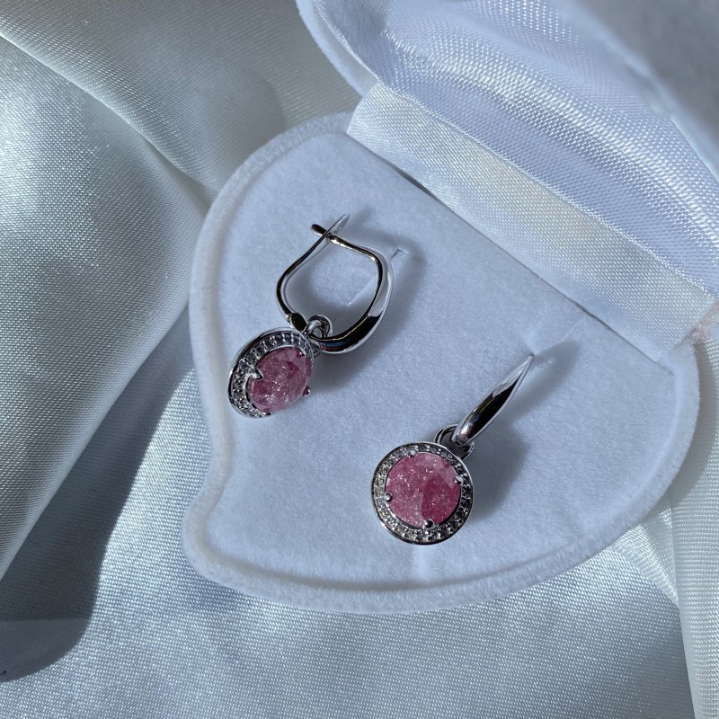 Charmante Ohrhänger aus 925er Silber, verziert mit funkelnden Zirkonia und dunklen Rosaquarz.