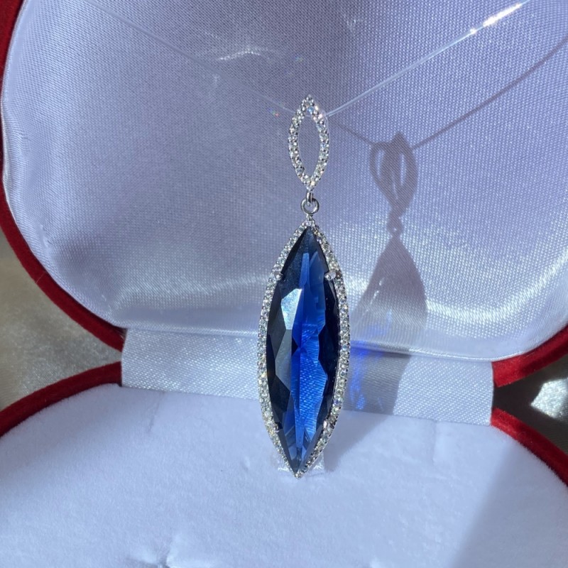 Очаровательная серебряная подвеска со вставками необыкновенно красивого иолита и сверкающих