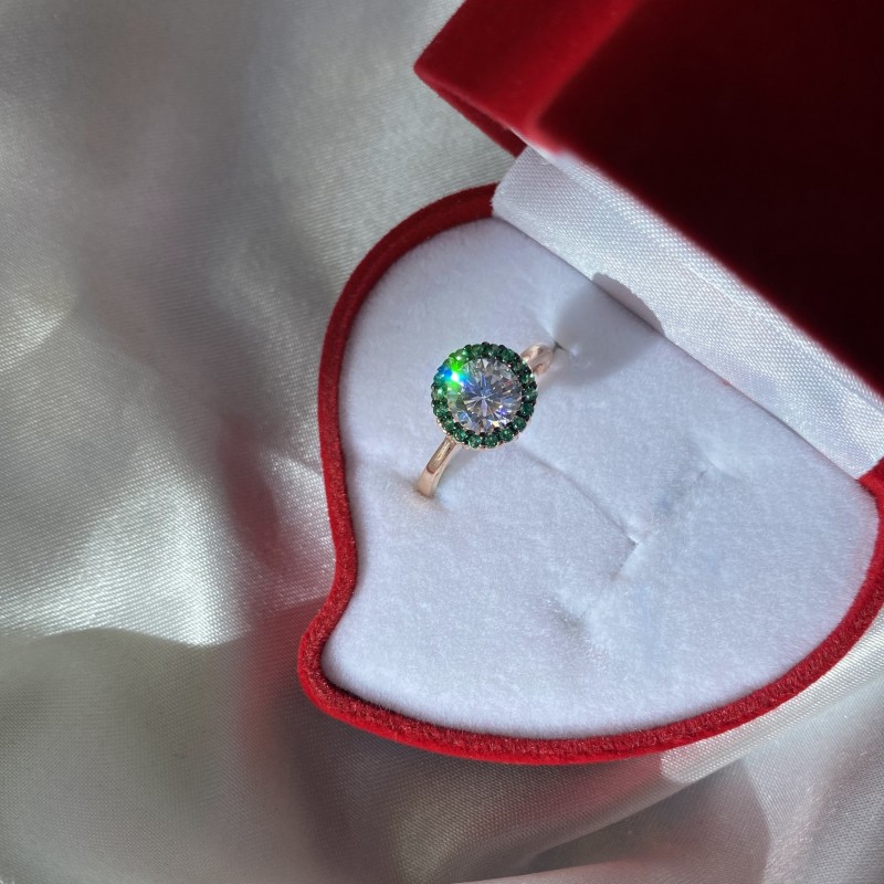 Einsatz: grün Zirkonia Ø 1,8 mm; Swarovski® Kristallkreis Ø 7,0 mm