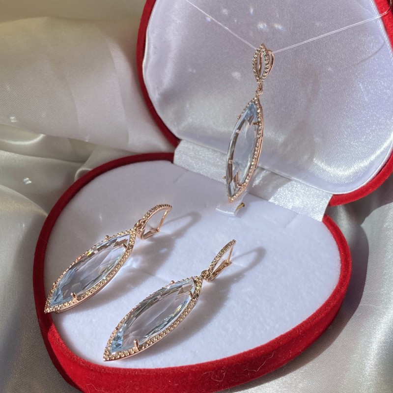 Topas ist das härteste Mineral seiner Klasse. Es hat einen starken Glasglanz mit einer Perlmutttönung. Topaskristall kann eine Vielzahl von Farben haben: Es gibt Steine in Blautönen, blauer Topas, rosa Topas. In der Geschichte schmückte Topas, der sehr teuer war, die Kronen und Kopfbedeckungen von Königen und Sultanen. Seine Auffälligkeit gewinnt unweigerlich die Liebe von Kennern der Schönheit. Topasschmuck betont die Zärtlichkeit, Charme und Natürlichkeit der Schönheit des Besitzers! Dies ist ein wunderbares Geschenk für einen geliebten Menschen.