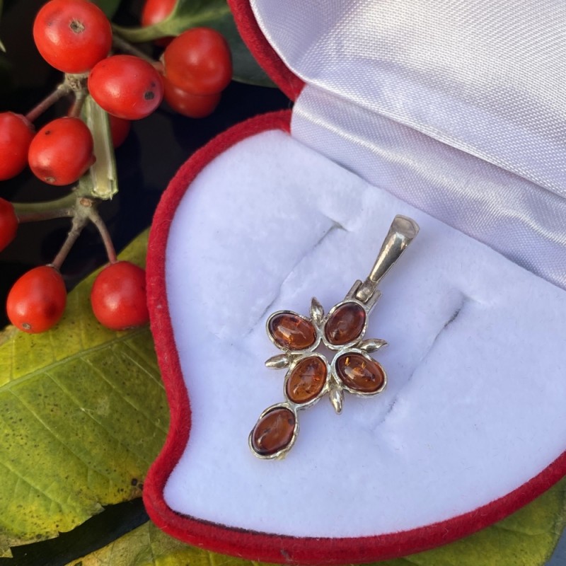 Ein Anhänger aus 925er Silber und einzigartigem Bernstein, mit diesem erstaunlichen "Stück der Sonne", das mit allen Tönen Cognacfarbe spielt.