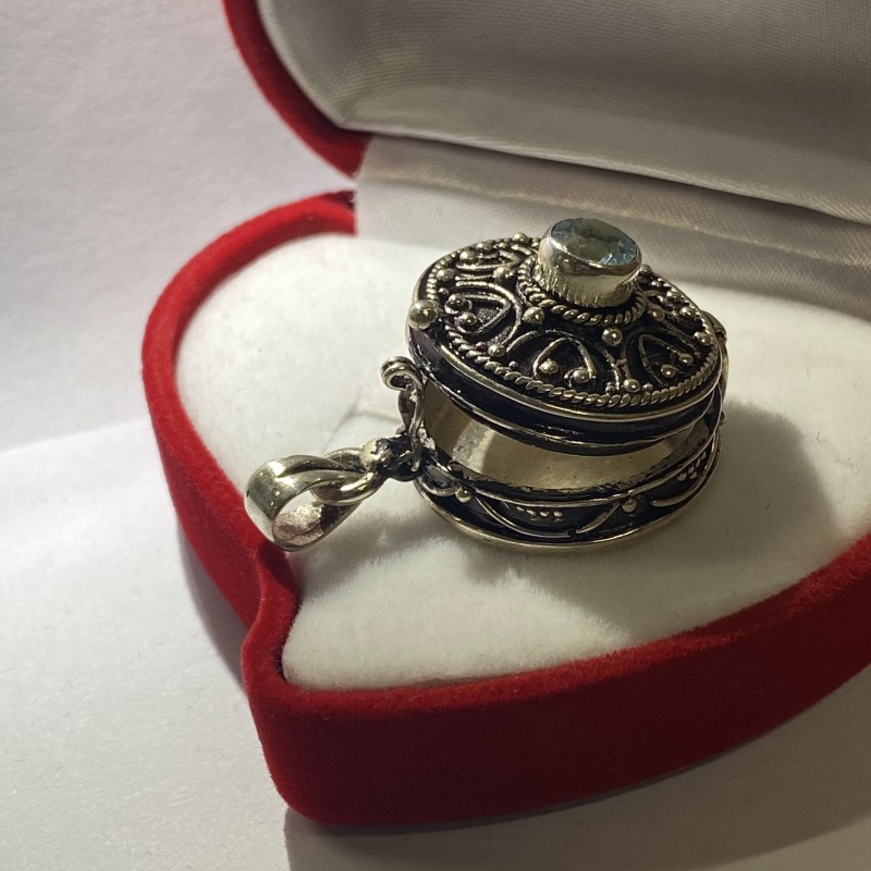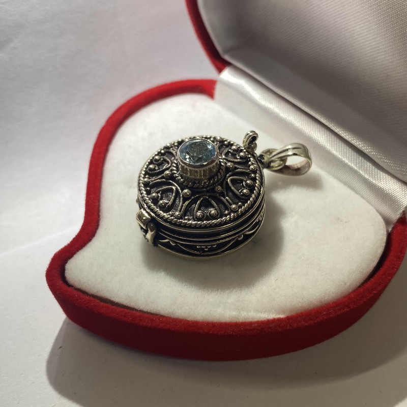 Silberanhänger - Amulett aus geschwärztem 925er Sterlingsilber mit blauen Zirkonia-Einsatz.
