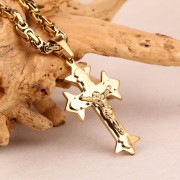Die gelbgoldfarbene Kette aus königlichem Geflecht verfügt über einen großen Kreuzanhänger mit einem Kruzifix!