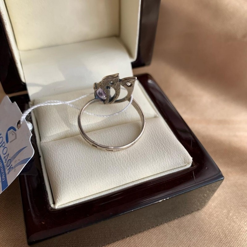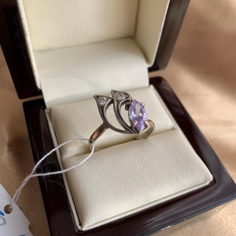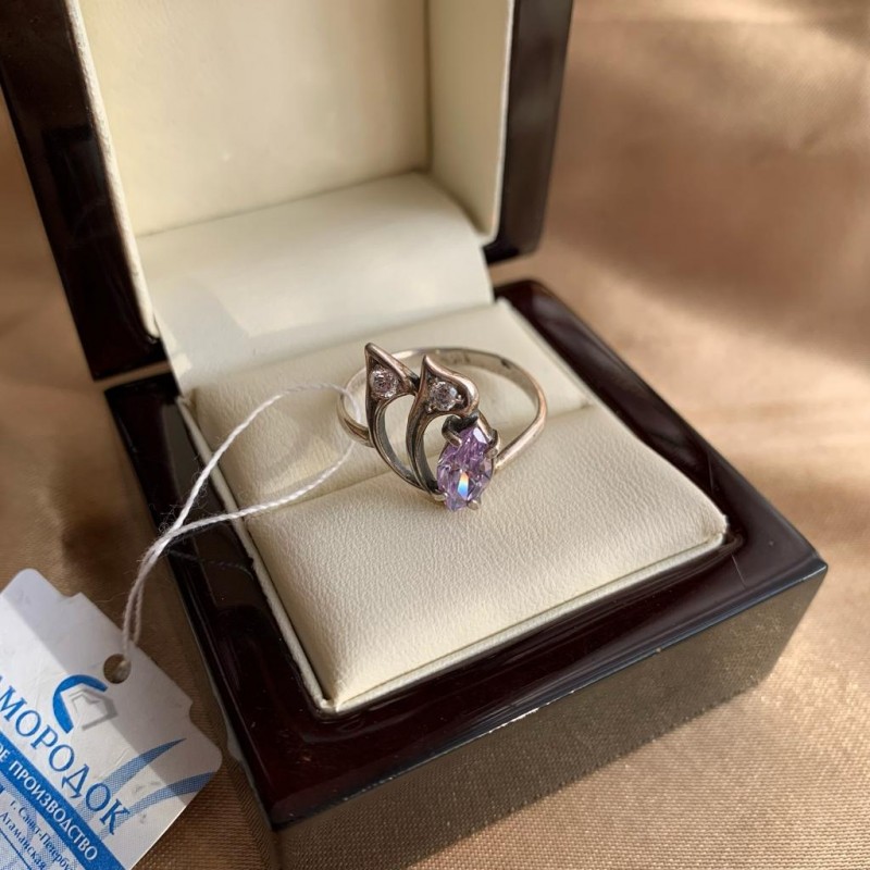 Bezaubernder Ring aus geschwärztem 925er Silber mit Einsätzen aus funkelnden Zirkonia und Amethyst. Solche Ringe unterstreichen perfekt die Raffinesse, Weiblichkeit und den Charme ihrer Besitzerin.