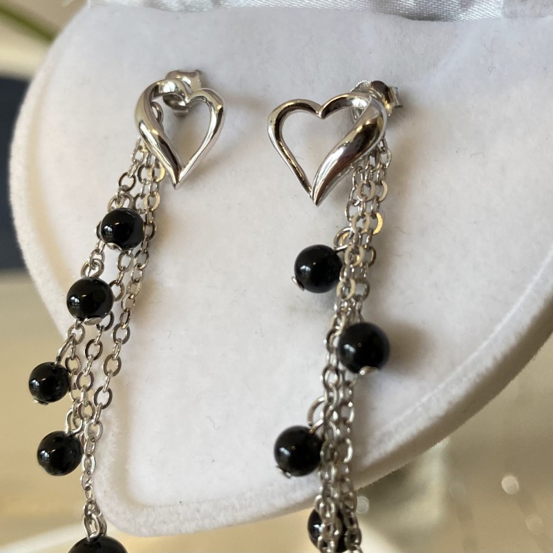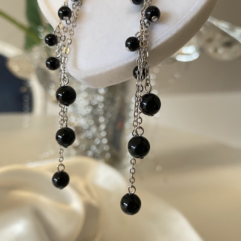 Schicke, modische Ohrhänger als Ohrstecker. 925er Silber! Onyxkugeln hängen luftig an silbernen Ketten aus "Anker"-Geflecht. Ein tolles Geschenk oder Gelegenheit, sich selbst zu erfreuen.