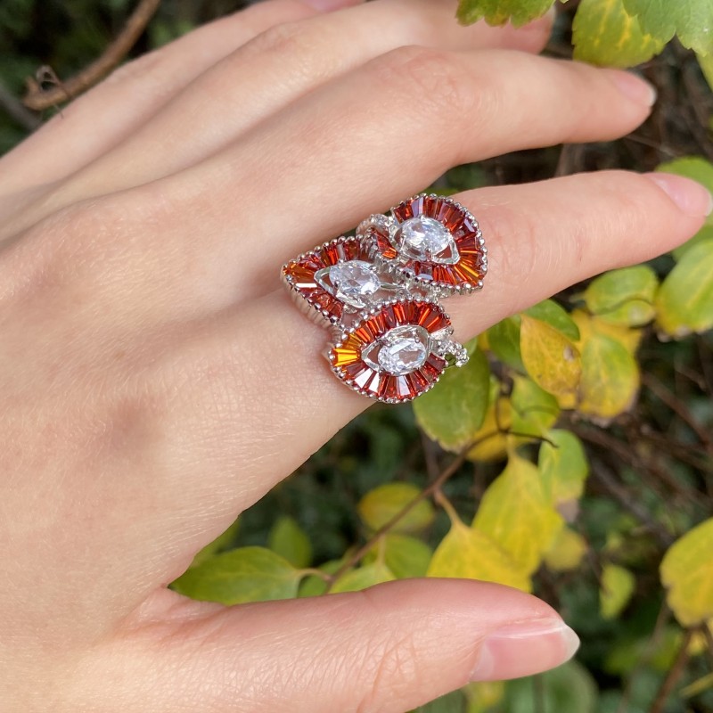 Размер объёмной декоративной части кольца: высота 4.0 мм/ длина 25.0 мм / ширина 23.0 мм