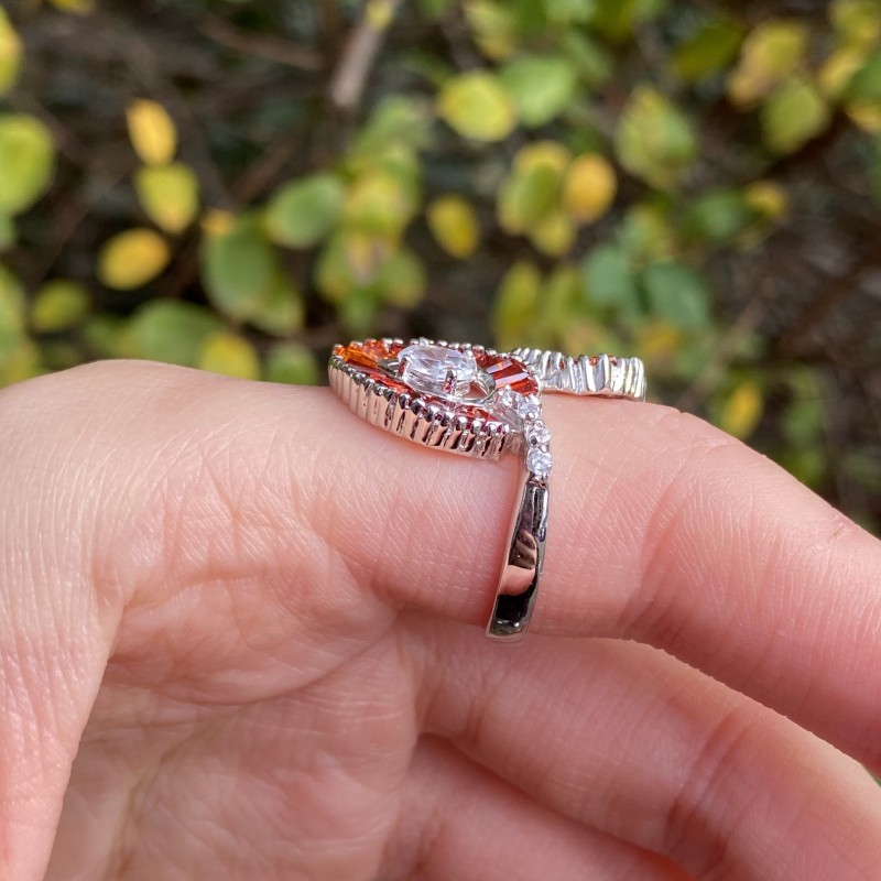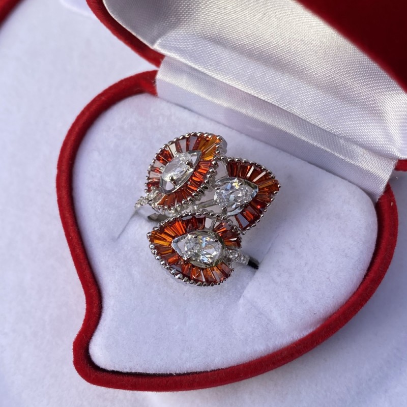 фианитами разного цвета и формы. Кольцо смотрится лаконично и стильно в красивой оправе из серебра 925 пробы. Это украшение несет миссию дарить самые светлые и высокие чувства своей обладательнице!