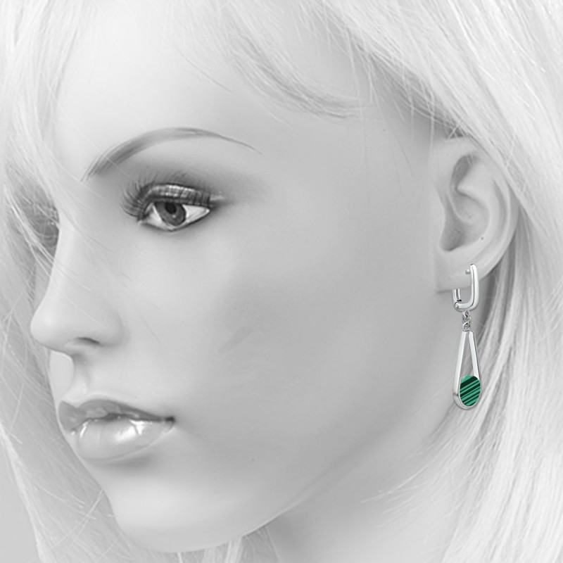 Bezaubernde Ohrhänger aus 925er Sterlingsilber mit Einsätzen aus wundervollen Malachit. Mit seiner außergewöhnlichen Schönheit zieht der Stein die Aufmerksamkeit nicht nur direkt auf den Schmuck, aber auch auf die Schönheit ihres Besitzers.