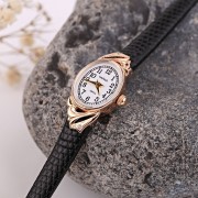 Rotgold 585. Quarzuhren sind bequemer zu bedienen, es besteht keine Notwendigkeit, sie aufzuwickeln oder sich Sorgen zu machen, dass sie für ein paar Tage im Regal liegen können. Die Genauigkeit von Quarz ist auch viel höher als die der Mechanik. Merkmale des Quarzwerks ermöglichen es Ihnen, eine dünnere und leichtere Uhr als eine mechanische Uhr zu schaffen. Unter dem strapazierfähigen Glas befindet sich ein weißes Zifferblatt mit stilisierten schwarzen Ziffern der Tagesuhr, die durch Gold-, Stunden- und Minutenzeiger angezeigt werden. Auf dem Zifferblatt befinden sich die Inschriften "Seagull Quartz", "Made in Russia".