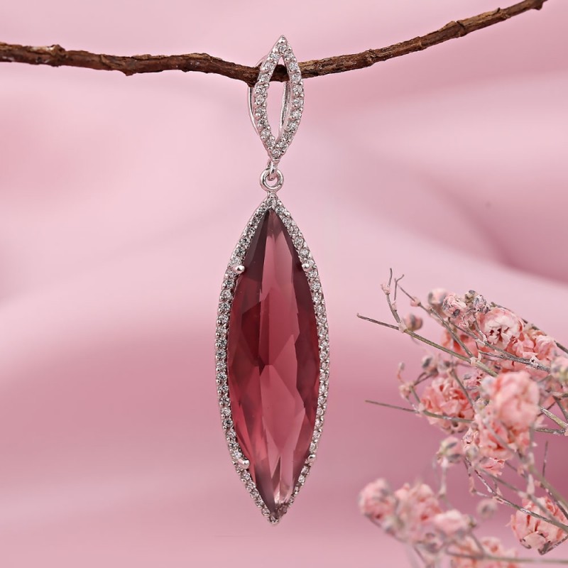 Bezaubernder Silberanhänger mit Einsatz aus wunderschönen Spinell und funkelnden Zirkonia. Vergoldetes 925er Sterlingsilber. Die perfekte romantische Ergänzung zu Ihrem Look!