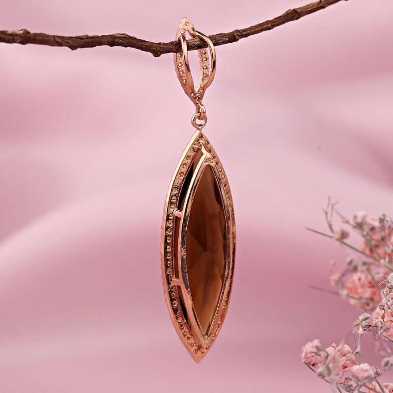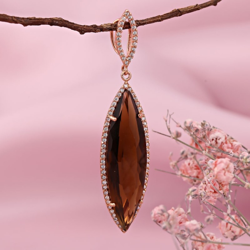 Bezaubernder Silberanhänger mit Einsatz aus wunderschönen Rauchquarz und funkelnden Zirkonia. Vergoldetes 925er Sterlingsilber. Die perfekte romantische Ergänzung zu Ihrem Look!