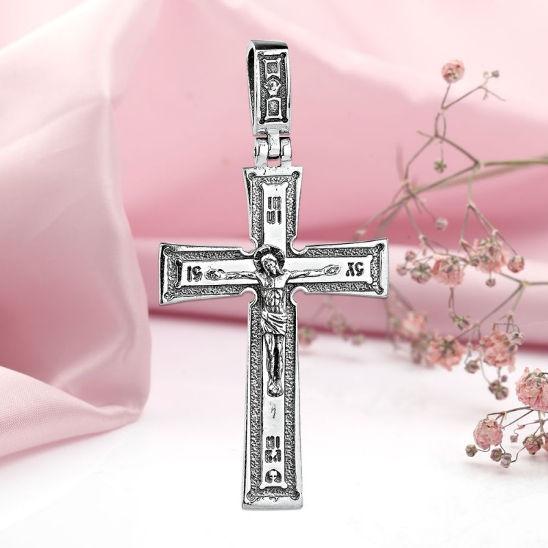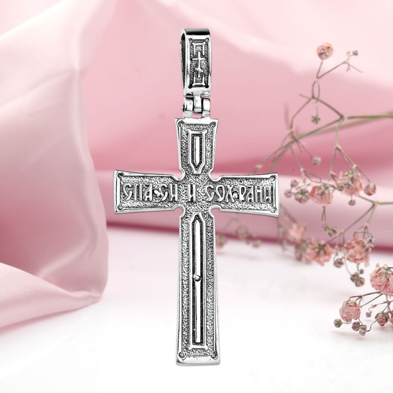 Silbernes Brustkreuz aus geschwärztem 925er Sterlingsilber! Auf der Rückseite befindet sich die Inschrift auf Russisch: „Rette und bewahre.“ Kratzt beim Tragen nicht.