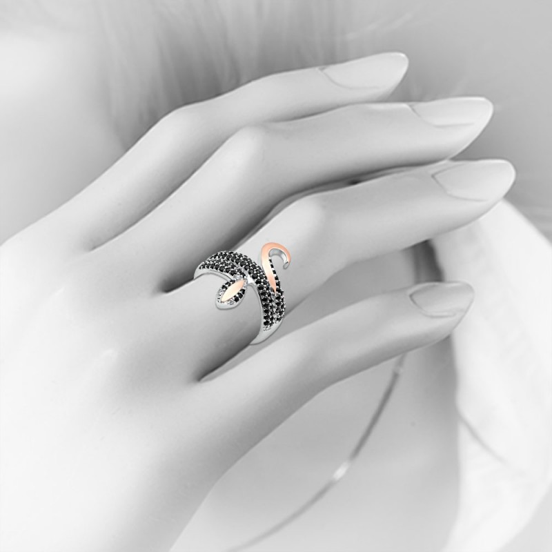 Bezaubernder Silberring mit Gold und Einsätzen aus schwarzem Zirkonia. 925 Silber und 415