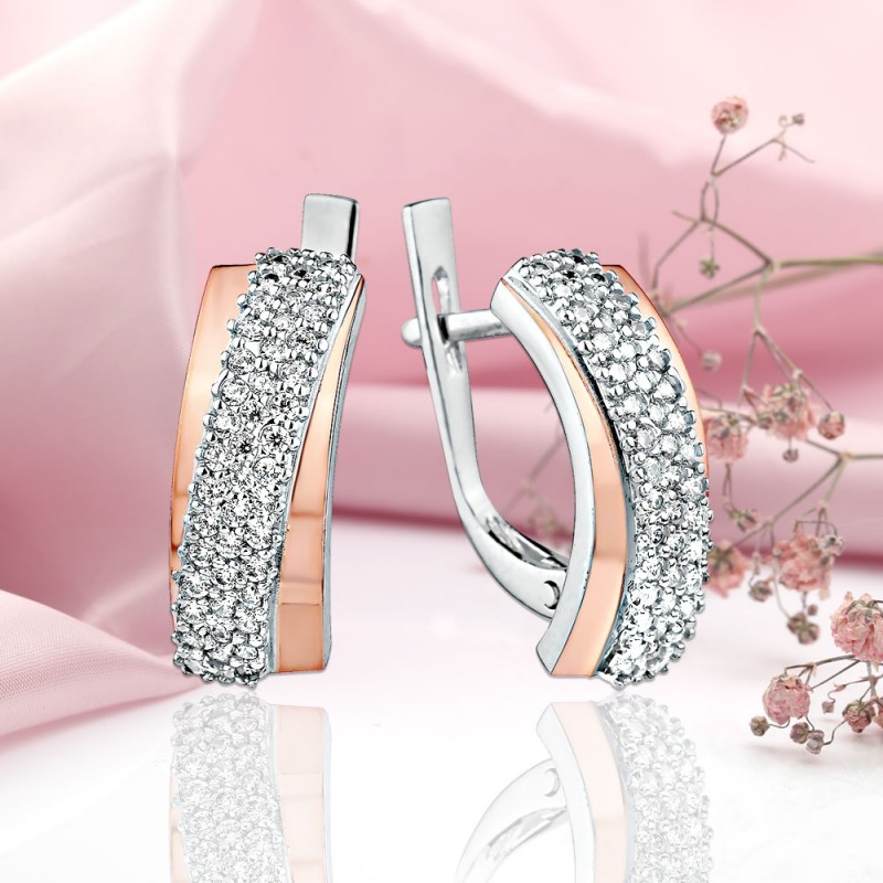 Rotgold mit funkelnden Zirkonia-Einsätzen! Diese Kombination zweier wertvoller Metalle sieht sehr elegant aus. Ein wunderbares Geschenk oder eine Gelegenheit, sich selbst eine Freude zu machen.