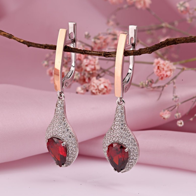 Шикарные серьги-подвески. Серебро 925 пробы с акцетами из