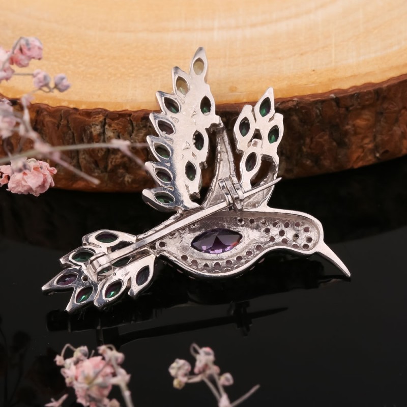 Bezaubernde Brosche aus 925er Silber und 375er Gold, verziert mit funkelnden mehrfarbigen Zirkonia. Silberbroschen mit Zirkonia betonen nicht nur die Schönheit und Anmut ihrer Besitzerin, sondern sind auch eine wunderbare Ergänzung zu jedem Outfit. Diese Dekoration hat die Mission, ihrem Besitzer die hellsten und höchsten Gefühle zu vermitteln!