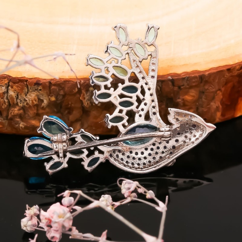 Silberbrosche "Voegelchen". Zirkonia & Alpanit