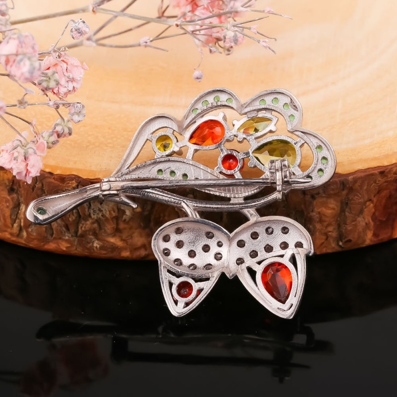 Silberbrosche "Eiche". Zirkonia & Alpanit