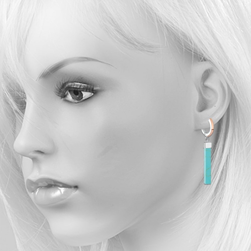 Bezaubernde Ohrhänger aus 925er Silber und 375er Gold mit Einsätzen aus wunderschönen großen Türkiseinsätzen. Sie unterstreichen perfekt die Raffinesse, Weiblichkeit und den Charme ihrer Besitzerin. Diese Dekoration hat die Mission, ihrem Besitzer die hellsten und höchsten Gefühle zu vermitteln!