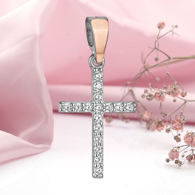 Silberkreuz mit Zirkoniaeinsatz, 925er Silber und 375er Gold. Kratzt beim Tragen nicht.