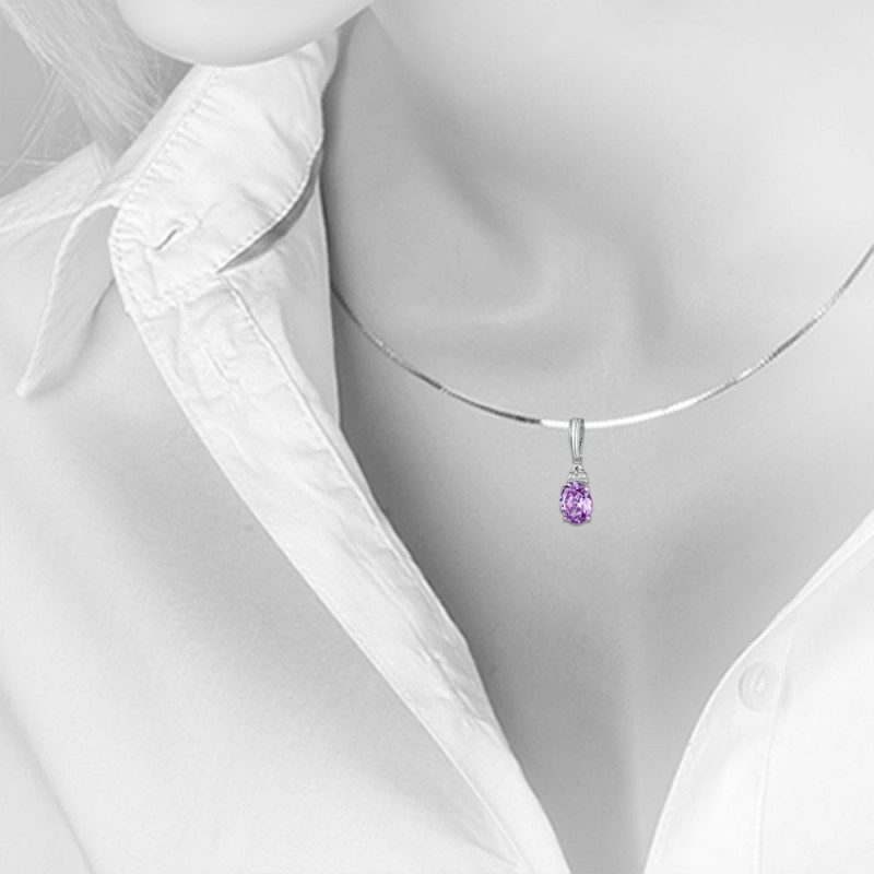 Bezaubernder Silberanhänger mit Einsatz aus wunderschönen und funkelnden Zirkonia verschiedener Farbe, Form und Größe. 925er Sterlingsilber. Die perfekte romantische Ergänzung zu Ihrem Look! Lila, das die Ausgewogenheit von Blau und die Energie von Rot vereint, lässt sich gut mit anderen Farben kombinieren. Diese erstaunliche Kombination aus Eleganz, Leichtigkeit und Individualität verleiht der Dekoration besonderen Charme und Inspiration. So können Sie stets bewundernde Blicke sammeln.