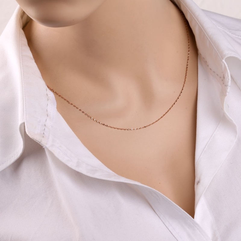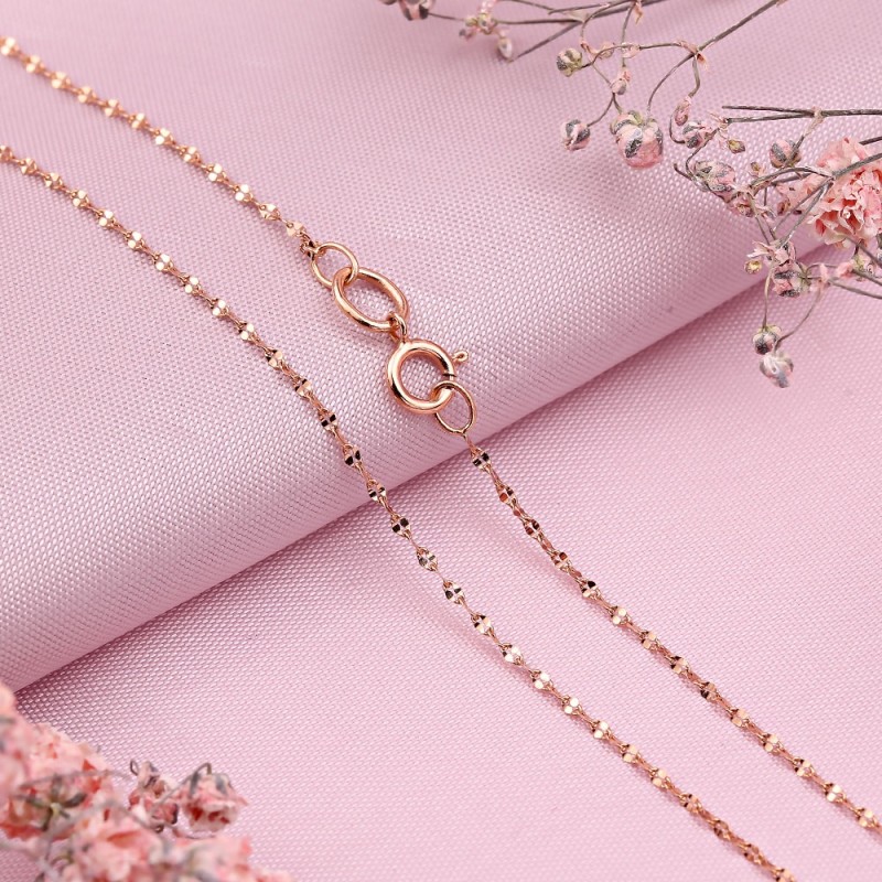 Rotgold, hergestellt aus einem ausgefallenen Ankergeflecht im Diamantschliff! Durch die originelle Verarbeitung der Kettenglieder wirkt es, als wäre die Kette mit Edelsteinen besetzt. Das Produkt sieht reichhaltig aus und zieht die begeisterten Augen anderer an, indem es in der Sonne schimmert und funkelt.