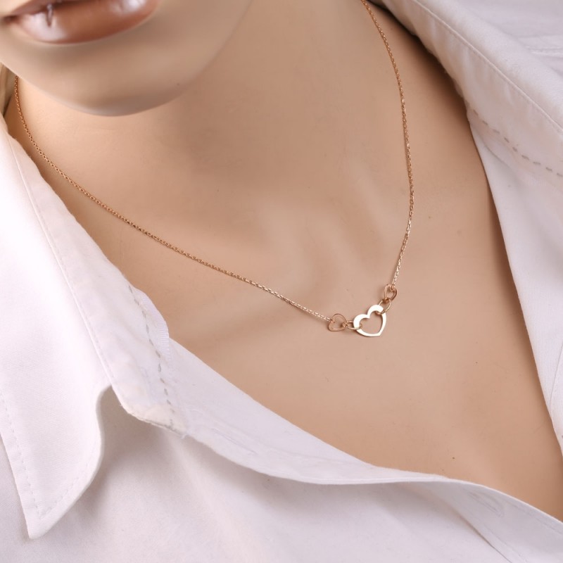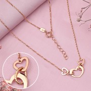красного золота 585 пробы, украшенного подвеской из сердец с зеркальной поверхностью. Цепь - якорное плетение с алмазной огранкой.