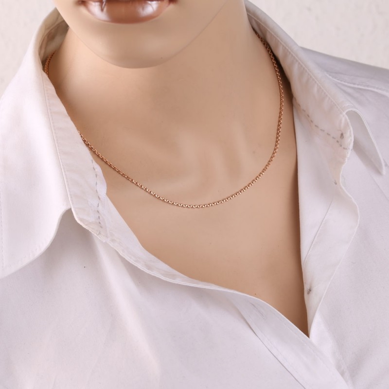 Rotgold, hergestellt aus einem ausgefallenen Ankergeflecht im Diamantschliff! Durch die originelle Verarbeitung der Kettenglieder wirkt es, als wäre die Kette mit Edelsteinen besetzt. Das Produkt sieht reichhaltig aus und zieht die begeisterten Augen anderer an, indem es in der Sonne schimmert und funkelt.