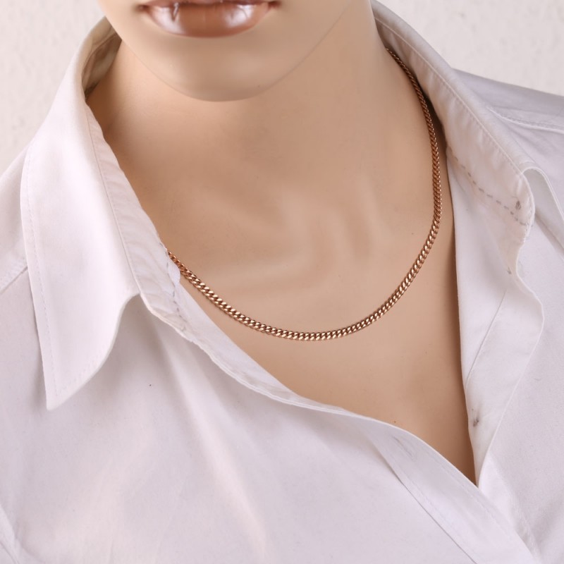 Rotgold mit Diamantschliff. Goldketten schaffen den nötigen Akzent im Bild und lenken die Aufmerksamkeit auf den Reichtum und Luxus von Accessoires, denn Gold ist schön, stilvoll, schick und teuer.