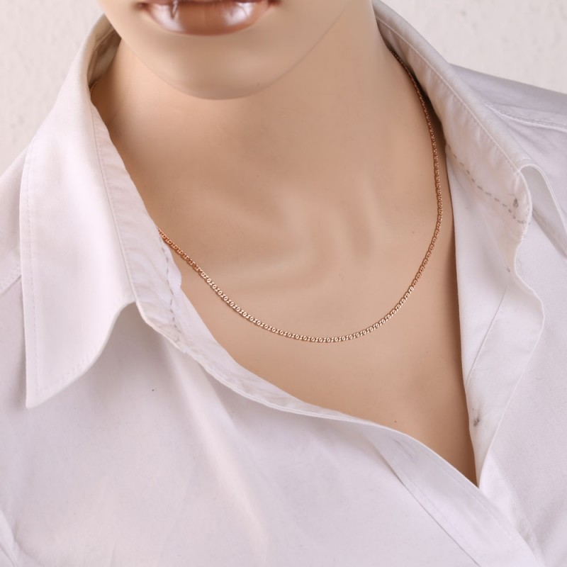 Rotgold mit Diamantschliff. Goldketten schaffen den nötigen Akzent im Bild und lenken die Aufmerksamkeit auf den Reichtum und Luxus von Accessoires, denn Gold ist schön, stilvoll, schick und teuer.