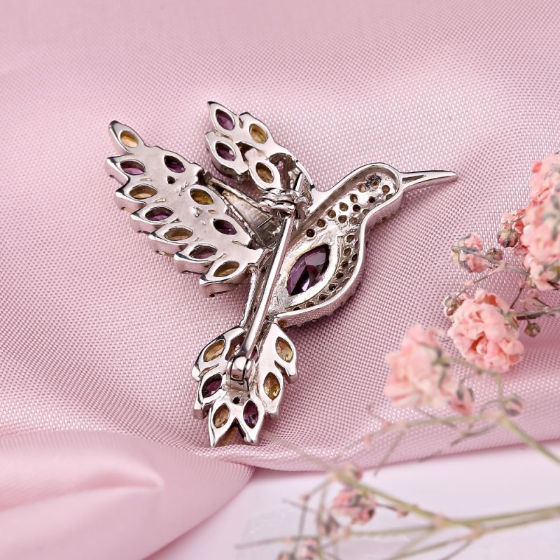 Bezaubernde Brosche aus rhodiniertem 925er Silber und 375er Gold, verziert mit funkelnden mehrfarbigen Zirkonia und Juwelierglas. Silberbroschen mit Zirkonia betonen nicht nur die Schönheit und Anmut ihrer Besitzerin, sondern sind auch eine wunderbare Ergänzung zu jedem Outfit. Diese Dekoration hat die Mission, ihrem Besitzer die hellsten und höchsten Gefühle zu vermitteln!