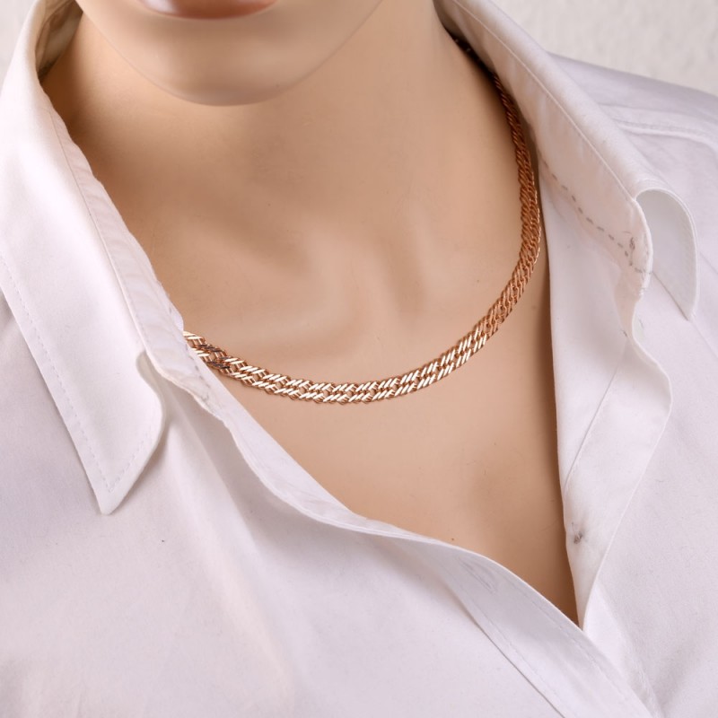 Rautenkette" ist in der Regel doppelt und dreifach: Aufgrund der besonderen Weberei und der Breite der Glieder eignen sich solche Ketten gut als eigenständige Dekoration, aber in Kombination mit dem Anhänger sehen sie wunderbar aus. Licht wird auf ungewöhnliche Weise von den Gliedern reflektiert. Die Kette behält ihre ursprüngliche festliche Brillanz und Schönheit für eine lange Zeit.