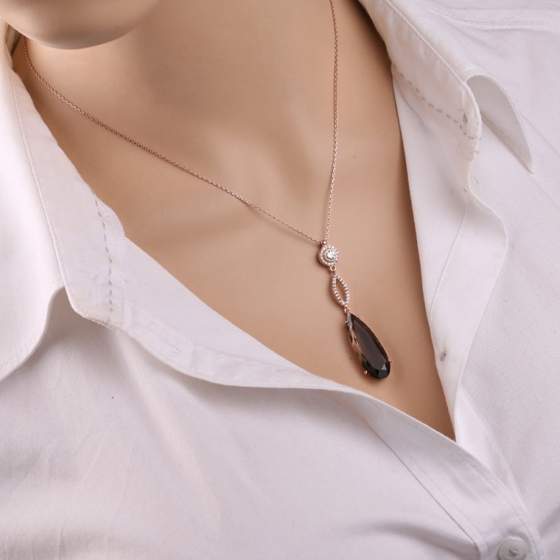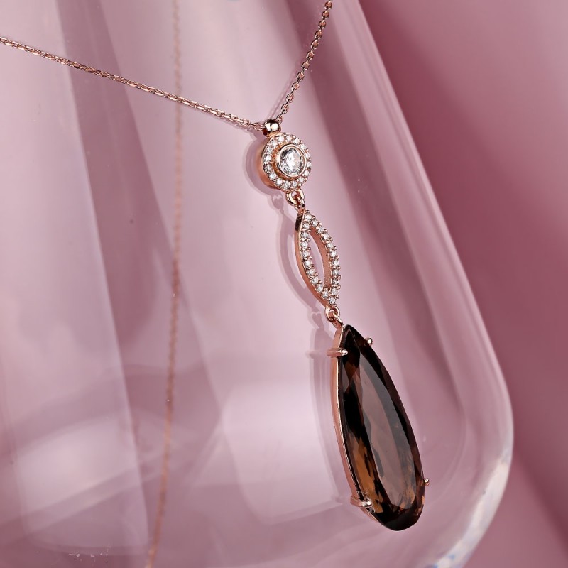 Eine entzückende, zarte Halskette mit bezaubernden Zirkonia-Steinen und wunderschönen Rauchquarz in einem wunderschönen Rahmen aus vergoldetem 925er Sterlingsilber. Eine großartige Gelegenheit, sich selbst zu verwöhnen oder Ihrer Liebsten ein Geschenk zu machen, das die Zärtlichkeit, den Charme und ihre natürliche Schönheit unterstreicht! Ankerkettengeflecht mit Diamantschliff.