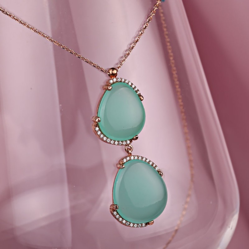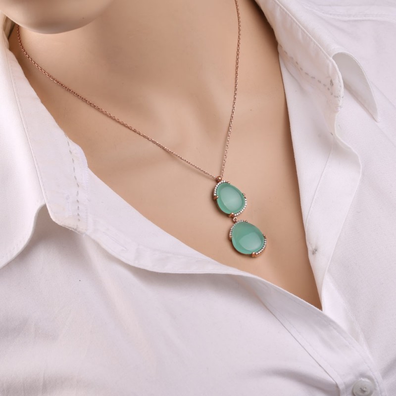 Eine entzückende, zarte Halskette mit bezaubernden Zirkonia-Steinen und wunderschönen Chrysopras in einem wunderschönen Rahmen aus vergoldetem 925er Sterlingsilber. Eine großartige Gelegenheit, sich selbst zu verwöhnen oder Ihrer Liebsten ein Geschenk zu machen, das die Zärtlichkeit, den Charme und ihre natürliche Schönheit unterstreicht! Ankerkettengeflecht mit Diamantschliff.