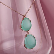 Eine sanfte grüne Sorte von Chalcedon, die sowohl zur Herstellung von Souvenirs als auch in teurem Schmuck der berühmtesten Marken verwendet wird. Halbtransparente Chrysoprasen scheinen von innen zu leuchten, sie sind sehr schön und werden gerne von Juwelieren verwendet, um teuren Schmuck zu kreieren.Chrysoprasen haben eine Eigenschaft - die Intensität der Farbe, die unter dem Einfluss des Sonnenlichts verloren geht, kann wiederhergestellt werden. Dazu genügt es, den Stein zu befeuchten, mit einem nassen Tuch zu umwickeln oder einfach in die Handflächen zu drücken. Es ist ein Mineral, das getragen werden möchte, und dann wird es seine ursprüngliche Farbe für eine lange Zeit behalten. Dieser Stein sieht sowohl im Gold- als auch im Silberrahmen gleichermaßen organisch aus. Hell und transparent, ist es auch mit Diamanten perfekt kombiniert.Natürlich verdient dieser eher seltene Vertreter von Chalcedon unsere Aufmerksamkeit. Eine solche einzigartige Kombination aus natürlicher Reinheit, Schönheit der Farbtöne und nützlichen Eigenschaften ist in der Welt der Steine nicht oft zu finden. Die Dekoration mit Chrysoprase wird die Raffinesse, Zärtlichkeit und Weiblichkeit seiner Besitzerin perfekt betonen. Ein wunderbares Geschenk für Ihre Geliebte.