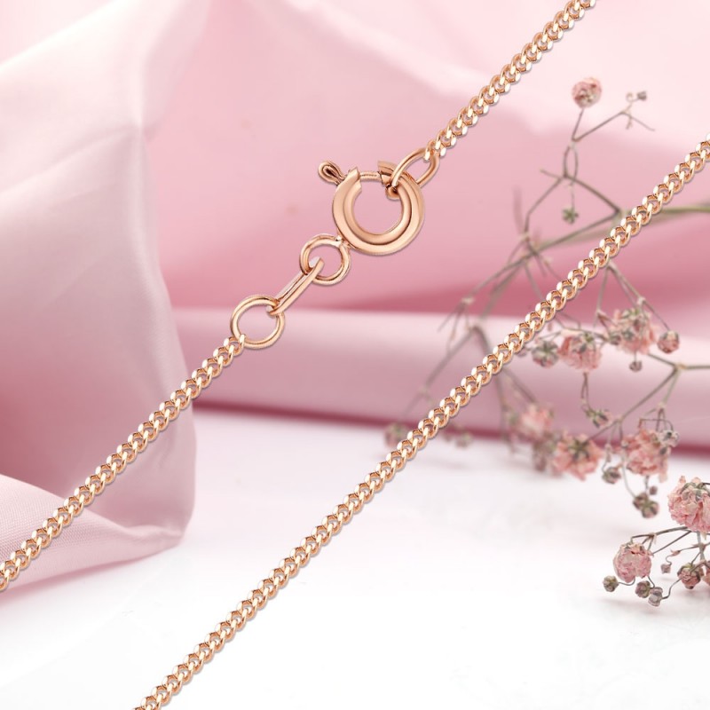 Rotgold mit Diamantschliff. Goldketten schaffen den nötigen Akzent im Bild und lenken die Aufmerksamkeit auf den Reichtum und Luxus von Accessoires, denn Gold ist schön, stilvoll, schick und teuer.