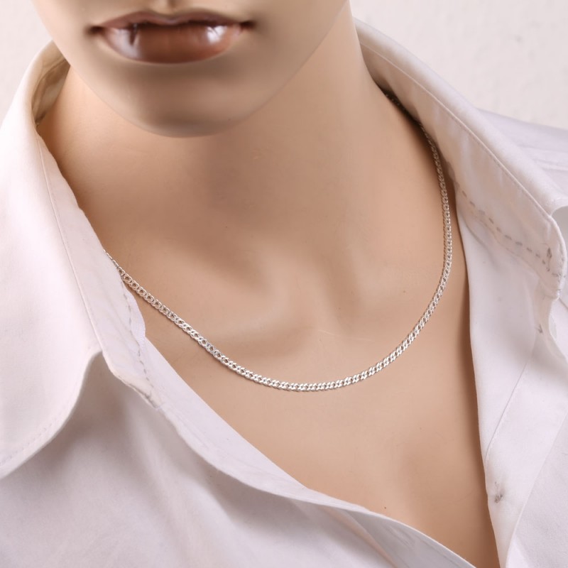Klassische flache Kette im Rautengeflecht aus 925er-Sterlingsilber mit Diamantenschliff. Licht wird auf ungewöhnliche Weise von den Gliedern reflektiert. Die Kette behält ihre ursprüngliche festliche Brillanz und Schönheit für eine lange Zeit.