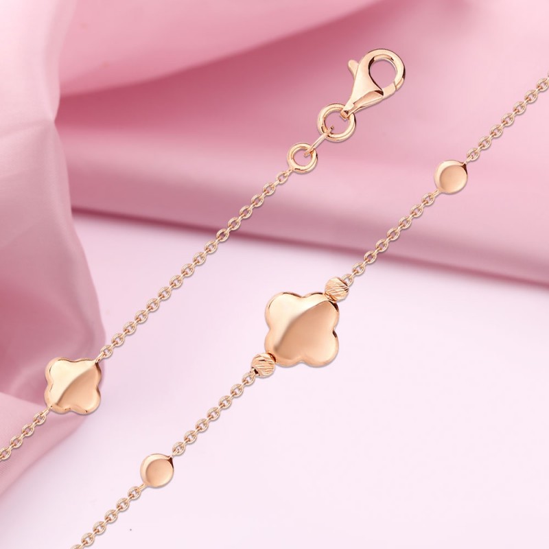 Rotgold mit wunderschönen Goldeinsätzen mit Spiegeloberfläche. Ein ausgezeichnetes Geschenk für Ihre Geliebte, das die Zärtlichkeit, den Charme und die Natürlichkeit ihrer Schönheit perfekt betonen wird!