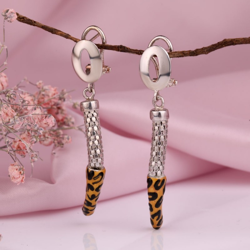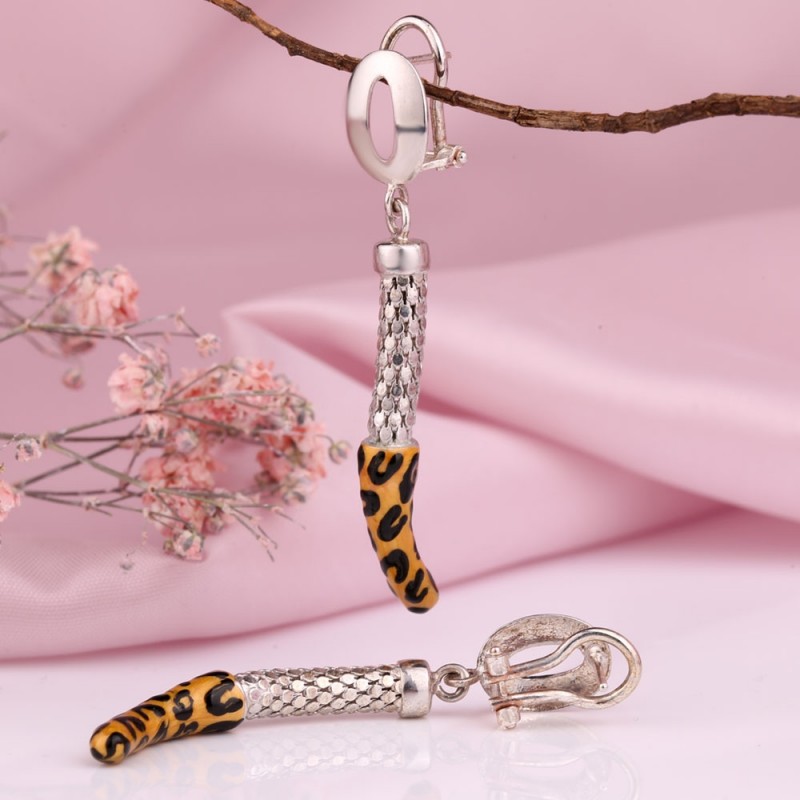 Шикарные, модные серьги-подвески. Серебро 925 пробы! Подвески - цепочки змейки, украшенные эмалью в виде хвоста леопарда. Прекрасный подарок или возможность порадовать себя.