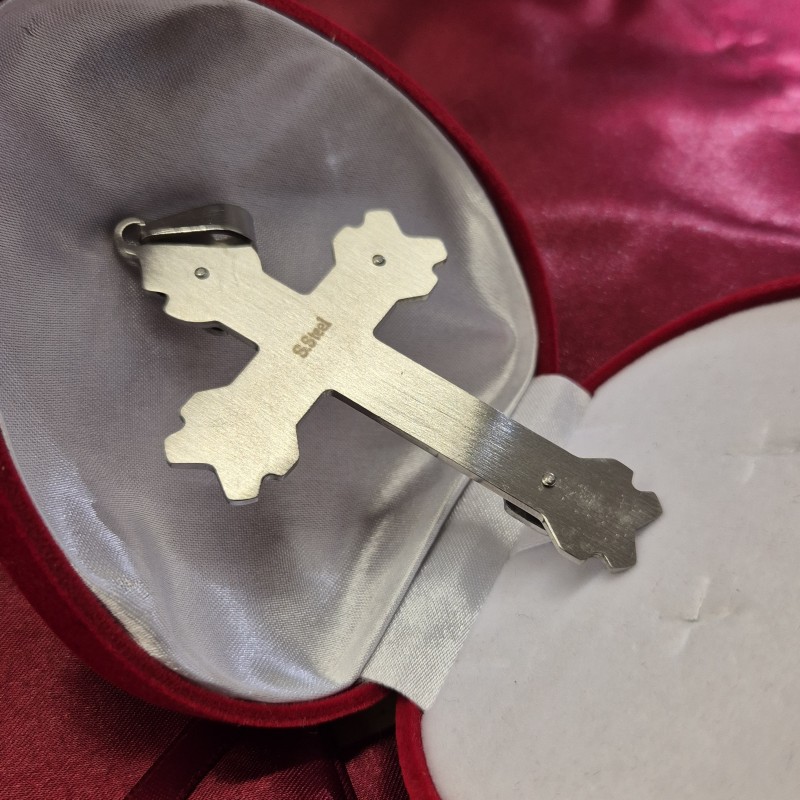Stahlkreuz aus Schmuckstahl mit verschleißfester Beschichtung. Schmuck aus 316L-Schmuckstahl rostet nicht, oxidiert nicht und ist absolut gesundheitlich unbedenklich! Kratzt beim Tragen nicht.